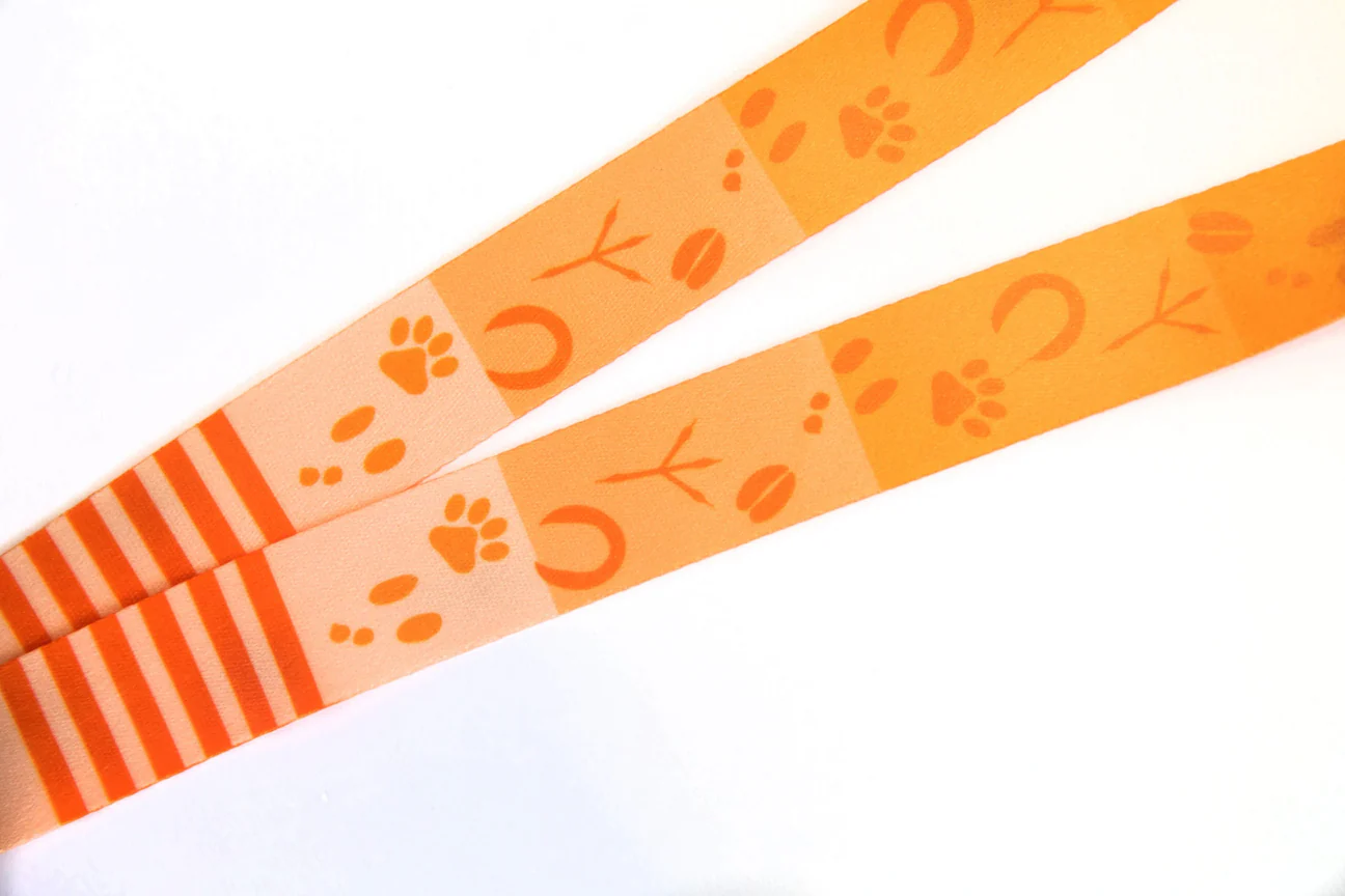 We recommended a 16" x 1" polyester strap featuring a slide buckle release (around the neck) and an oval clip for swift, hassle-free access. This practical solution met all safety and functional criteria. As for the lanyard's design, we dye-sublimated the requested various animal footprints pattern in the clients’ vibrant brand colors.
